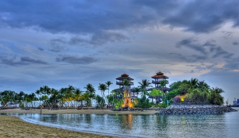 Trotz ihrer rasanten Entwicklung hat die Insel in einigen Teilen immer noch ihren Tropencharme erhalten. Sie erfahren ihn am ehesten, wenn Sie wochentags kommen. Auch wenn diese zur Straße von Malakka liegen, dem meistbefahrenen Schifffahrtsweg der Welt, bleiben die Strände von Siloso, Palawan und Tanjong reizvoll. Sie messen mehr als 3 km. Hier wird bis in die Morgenstunden gefeiert, hier wird Sport getrieben und in der Sonne gebadet. Einst war die 390 ha große „Insel des Friedens und der Ruhe“ ein Fischerdorf. Ab 1880 nutzten die Briten sie als Militärbasis, um sich gegen einen - nie erfolgten - Angriff von See zu wehren. Fort Siloso lädt zur Besichtigung. Die Ausstellung Images of Singapore gibt einen Einblick in die Geschichte der Stadt und die Kapitulation vor den Japanern. Beliebter ist bei Touristen der Tiger-Sky-Tower, der allen, die nicht schon per Seilbahn eingeschwebt sind, einen schönen Überblick über die Stadt bis hinüber nach Indonesien verschafft. Oder besuchen Sie das riesige Aquarium Underwater World, das viel mehr als nur Tropenfische bietet. Wer die Natur liebt und wird auch den Drachenweg Nature Walk/Dragon Trail mögen. Er führt bis zum Gipfel des Mount Imbiah. Butterfly Park und Insect Kingdom geben Einblick in die farbenfrohe Tierwelt der Tropen.